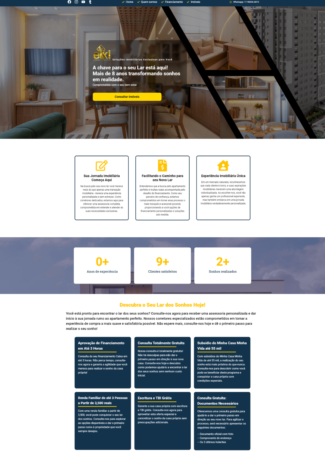 Estrutura pensada para transformar visitantes em clientes, com chamadas estratégicas e facilidade de contato.